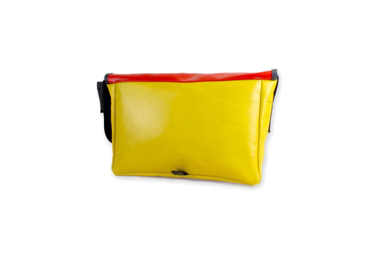 We handcraft durable messenger bags, crossbody bags, and accessories from recycled truck tarpaulins. Each piece is a unique, one-of-a-kind creation, made in small batches and sewn in the UK.