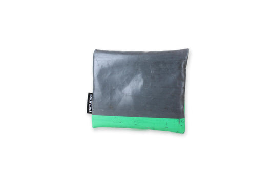Unique kit pouches made from recycled truck tarp. Various sizes available with high quality YKK zippers. Perfect for carrying cables, headphones and other small accessories.