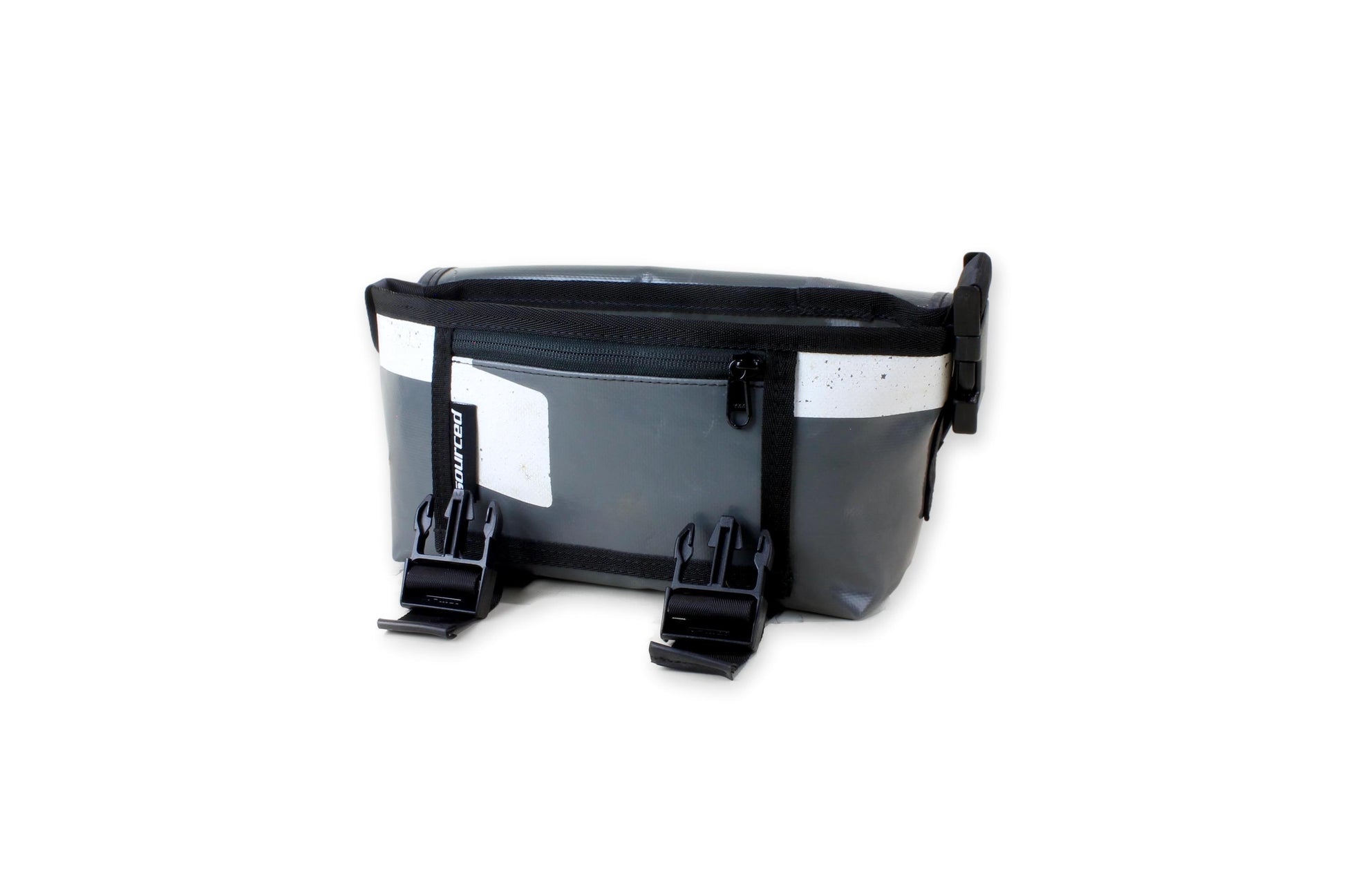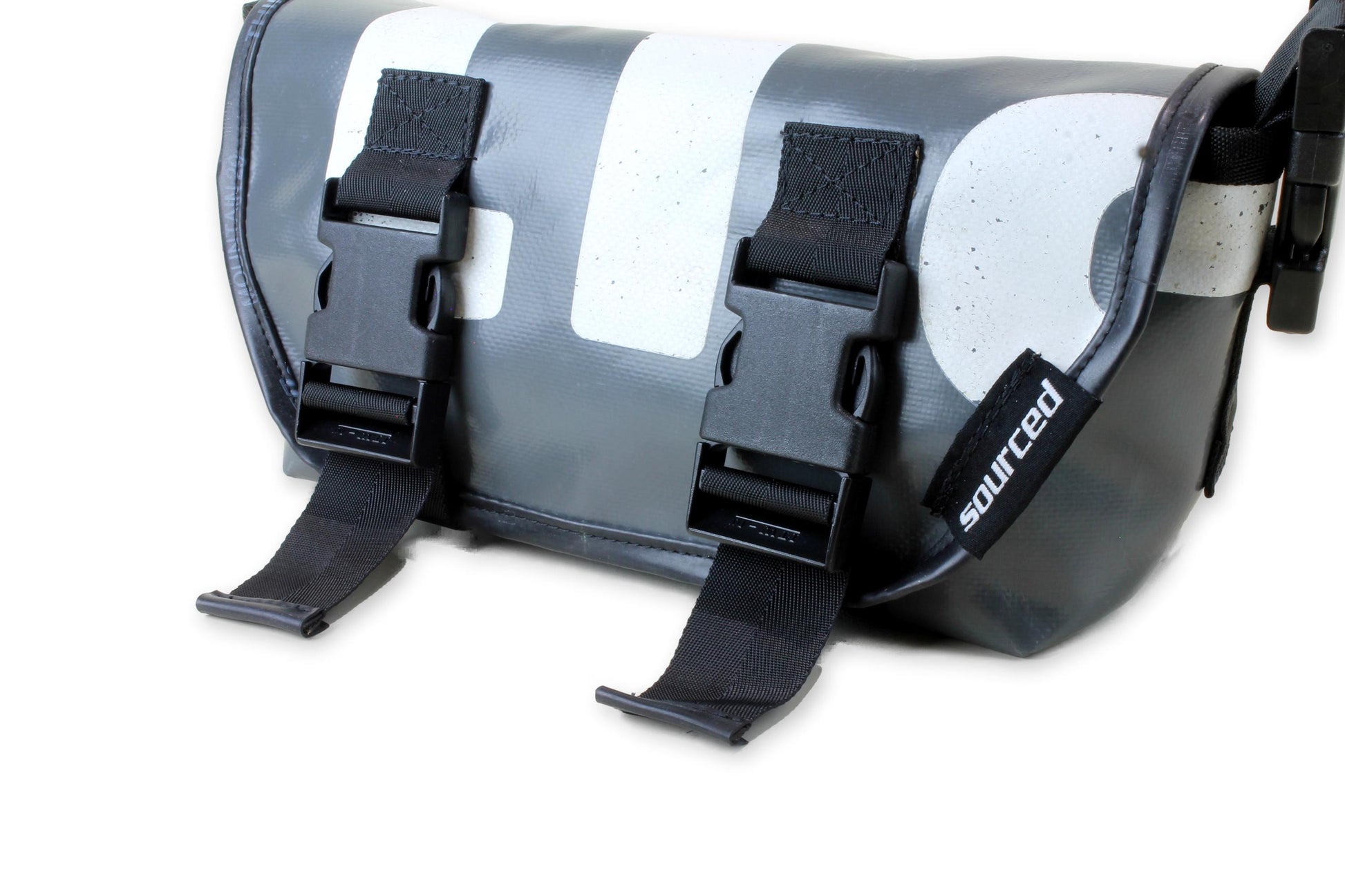 Truck tarp gets around. With many miles traveled it often displays scars from a previous life. We thoroughly clean all material and check for damage before repurposing into a new, functional bag. Down, but not out.