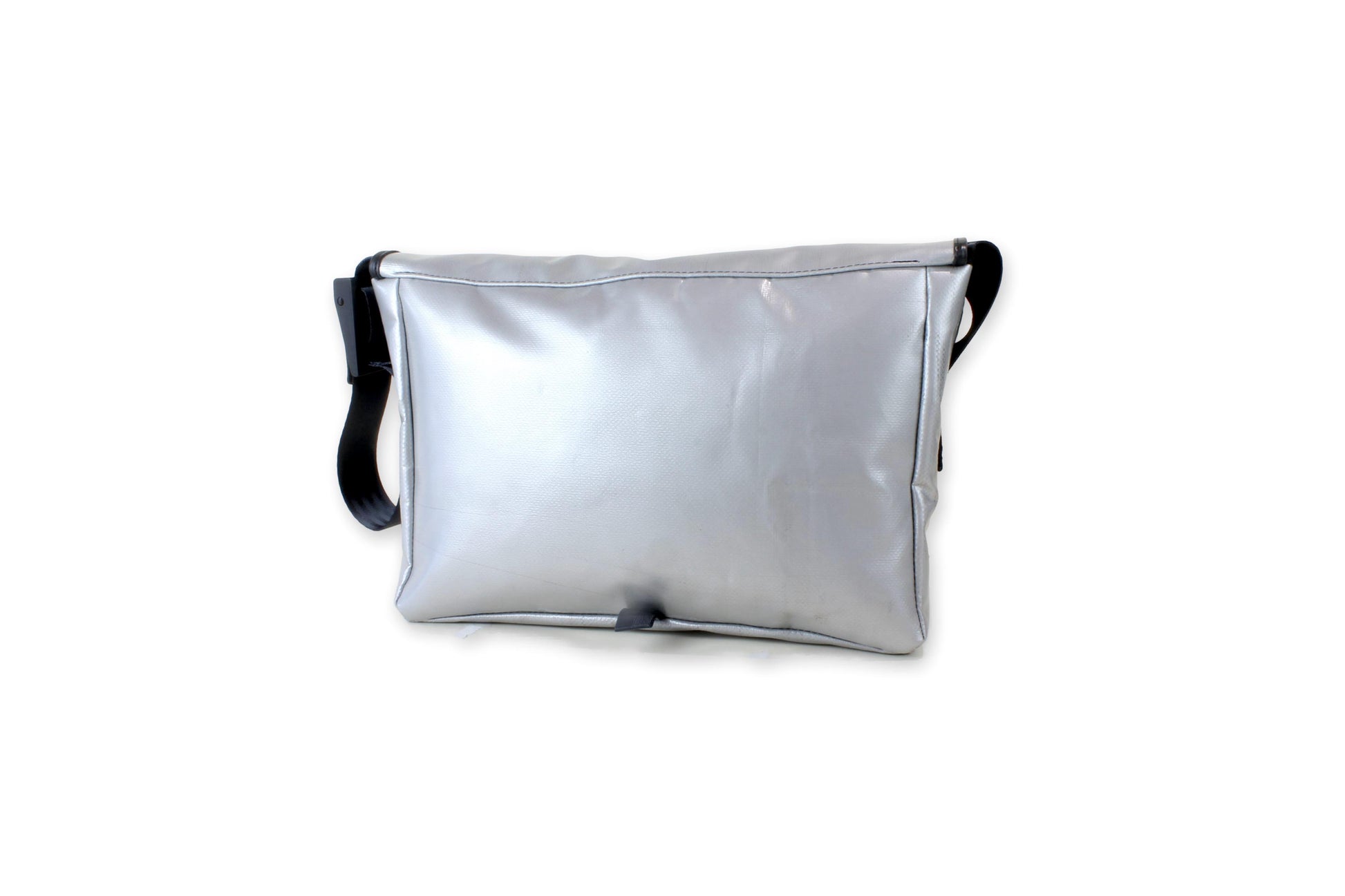 Our largest Messenger bag, crafted from recycled truck tarpaulin, offers space for a 15" laptop and more. Each bag is unique, showcasing the marks of its previous life.