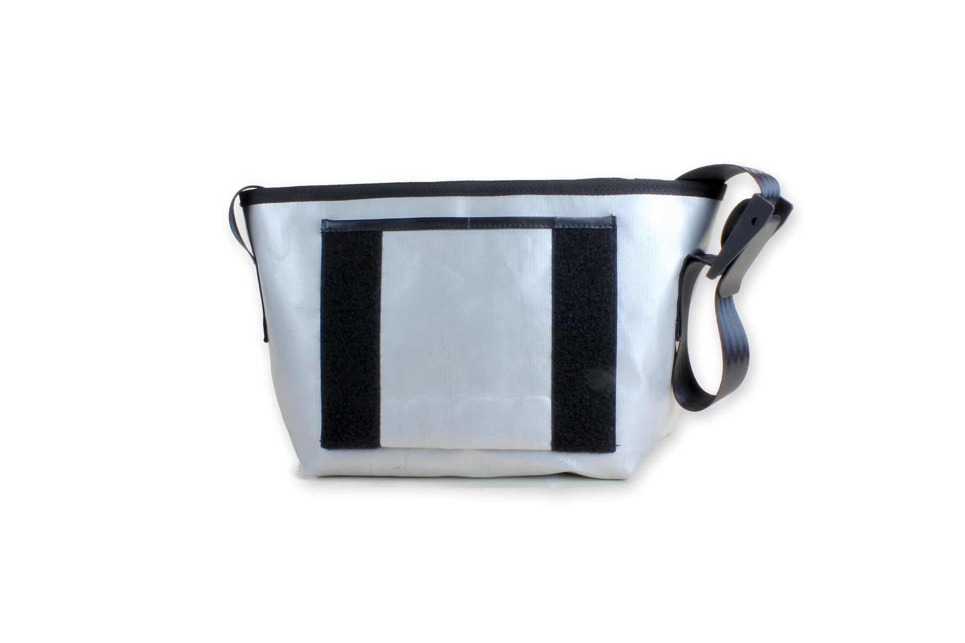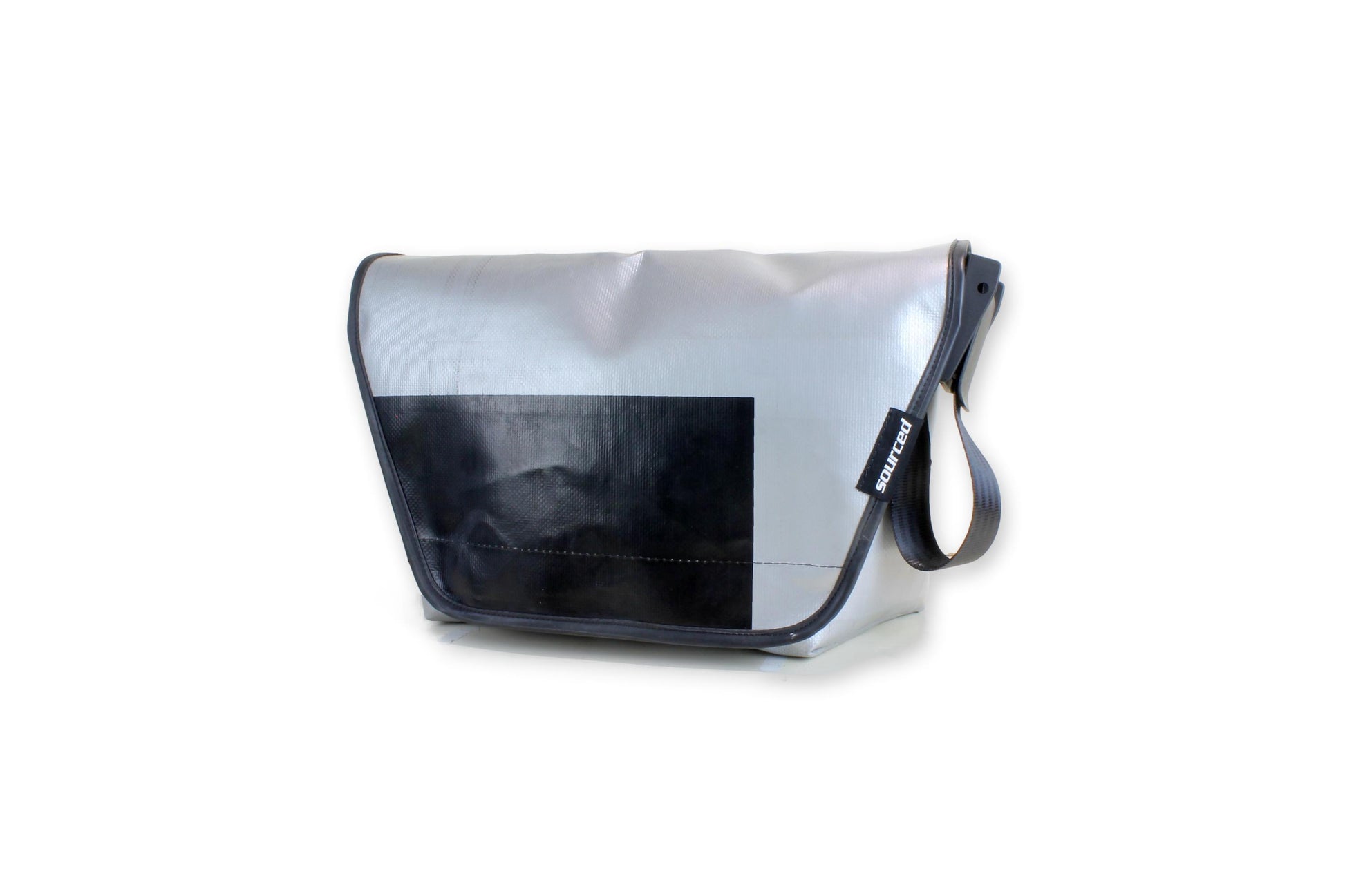 Our classic medium Messenger bag, crafted from recycled truck tarpaulin, fits a 13" laptop and more. Each bag is unique, showcasing the marks of its previous life.