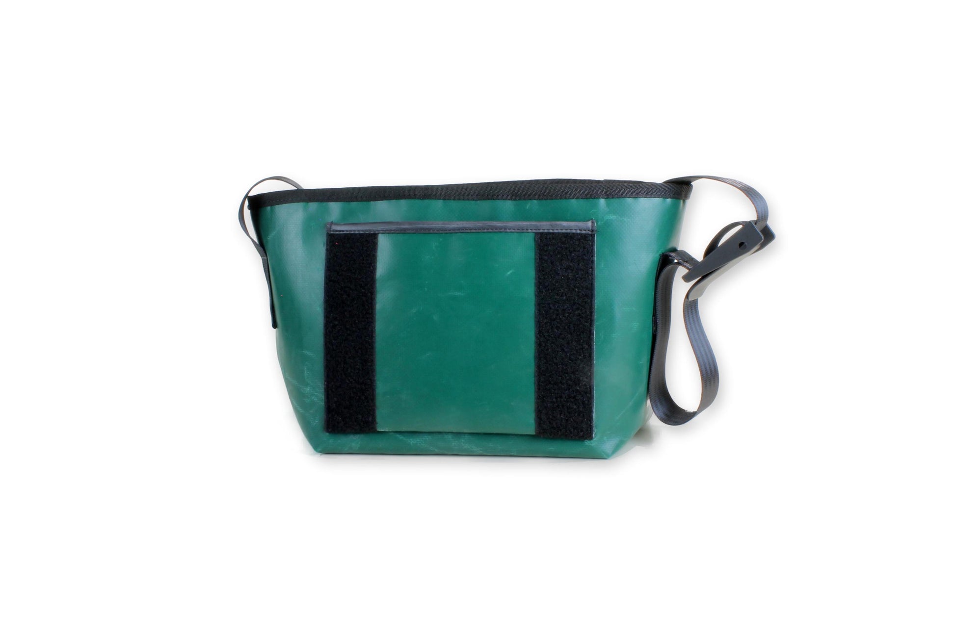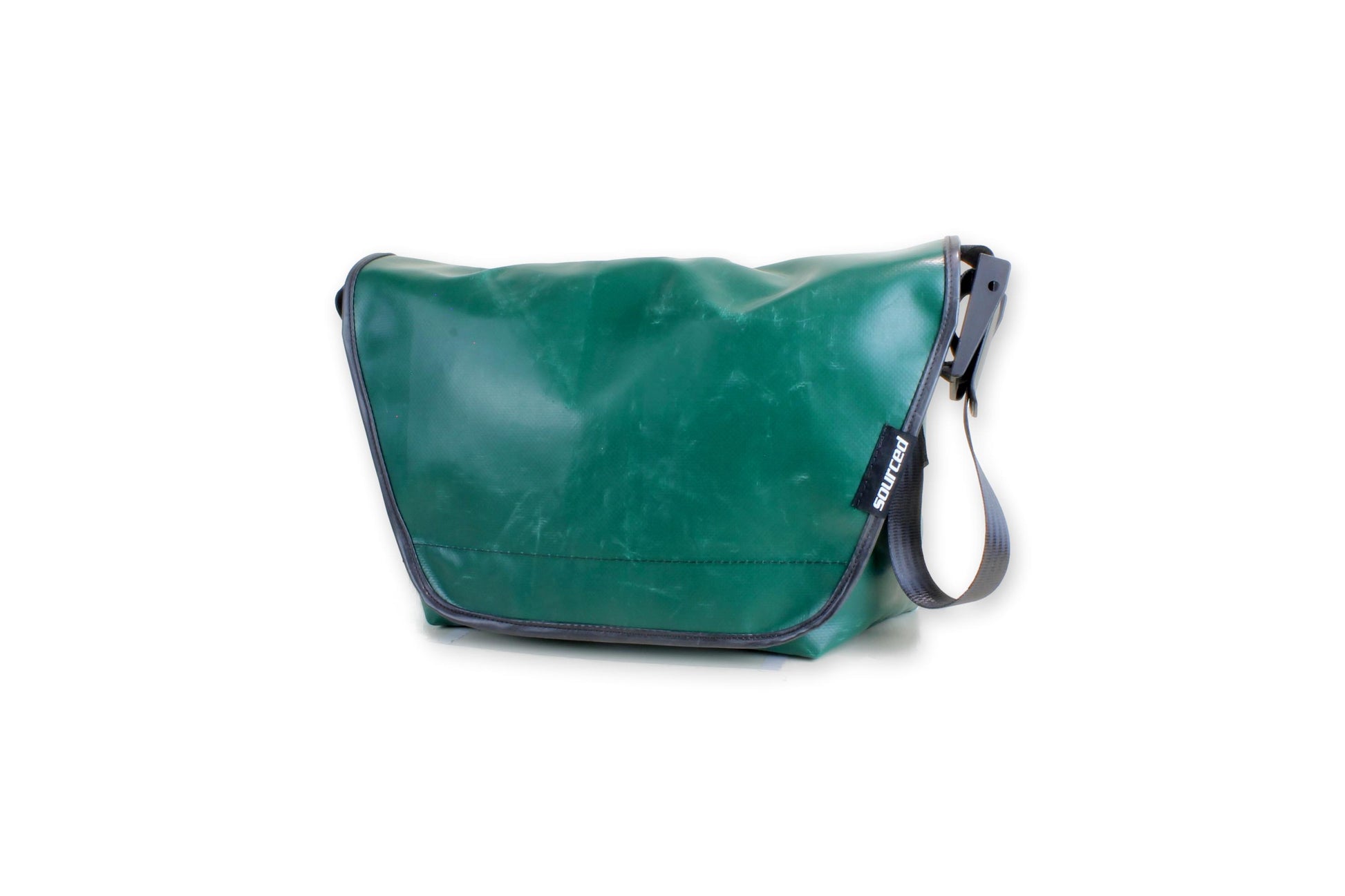 Our classic medium Messenger bag, crafted from recycled truck tarpaulin, fits a 13" laptop and more. Each bag is unique, showcasing the marks of its previous life.