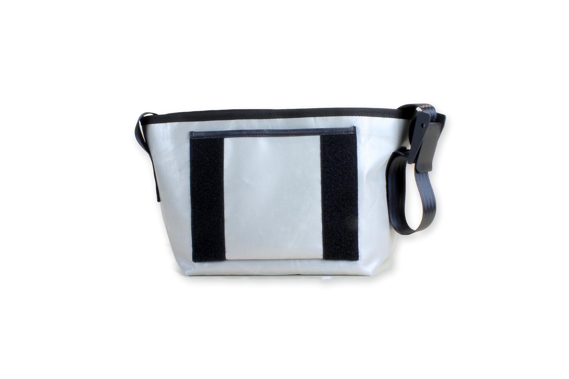 Our classic medium Messenger bag, crafted from recycled truck tarpaulin, fits a 13" laptop and more. Each bag is unique, showcasing the marks of its previous life.