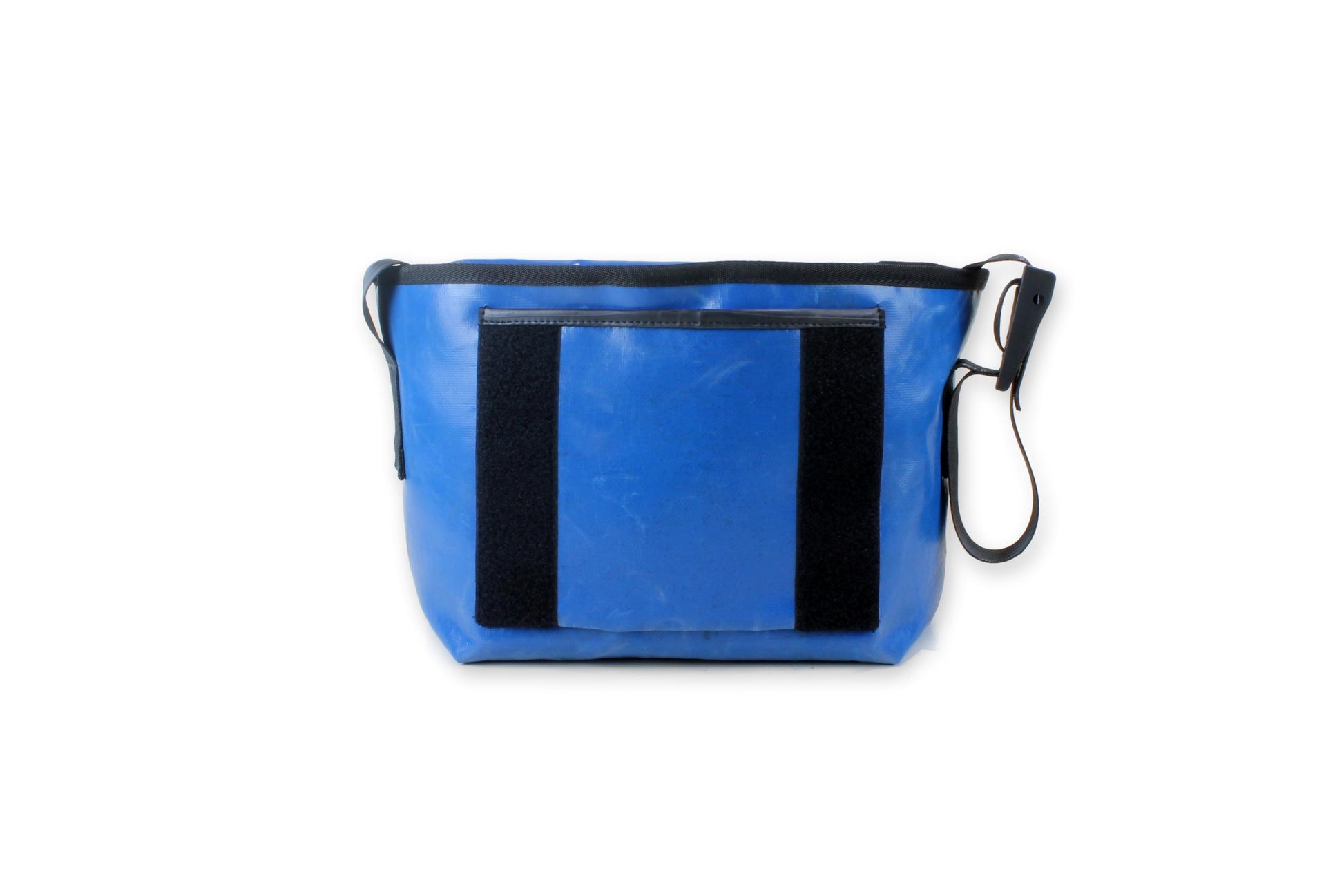 Our classic medium Messenger bag, crafted from recycled truck tarpaulin, fits a 13" laptop and more. Each bag is unique, showcasing the marks of its previous life.